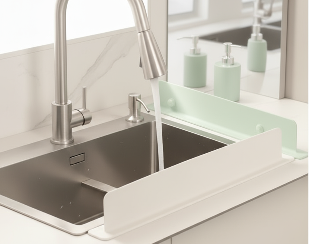 Elvena Su Bariyeri, tezgâhın kenarlarında bir koruma hattı oluşturarak suyun taşmasını engeller.